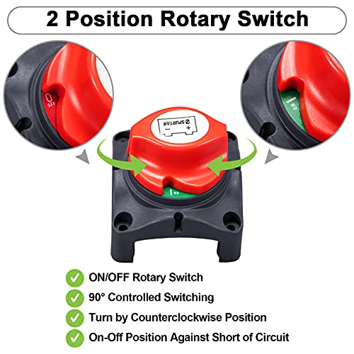 Eenvoudig in gebruik: Onze batterijscheidingsschakelaar is eenvoudig te installeren en te gebruiken. aan/uit 2 positie, 2 bevestigingsschroeven (diameter 10 mm).