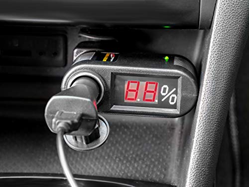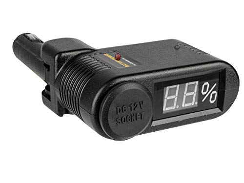 Functies: Batterij-indicator in%, extra 12 V-aansluiting voor aansluiting met geïntegreerde uitschakeling wanneer de laadstatus onder 30% daalt