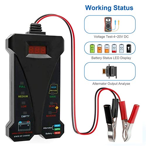 Eenvoudig te gebruiken: verbinding maken en aan de slag. Het geeft een snelle aflezing om te bepalen of de accu van een voertuig moet worden gesprongen of vervangen, en ook de uitgangsstatus van de dynamo.