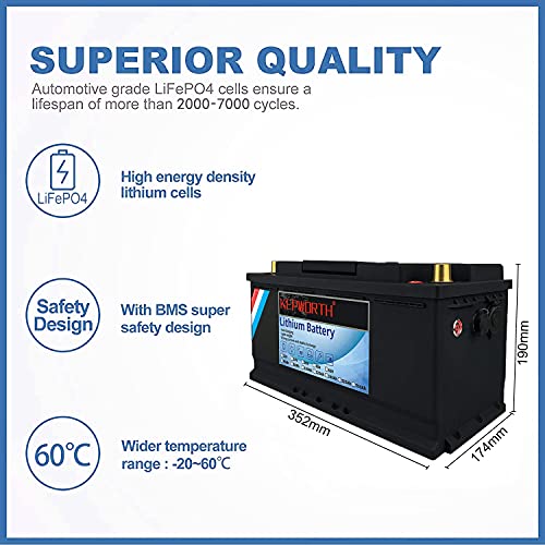 Specificaties: 12v 100Ah LifePo4-batterij Tot 7000 diepe cycli met BMS Lithium-ijzerfosfaat voor trollingmotor RV-zonnepanelen Basboten…