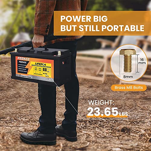 FEENCE LiFePO4 Accu, 12 V, 100 Ah PLUS lithium batterij, 8000 cycli Deep Cycle accu, ingebouwde 100 A BMS LifePO4…