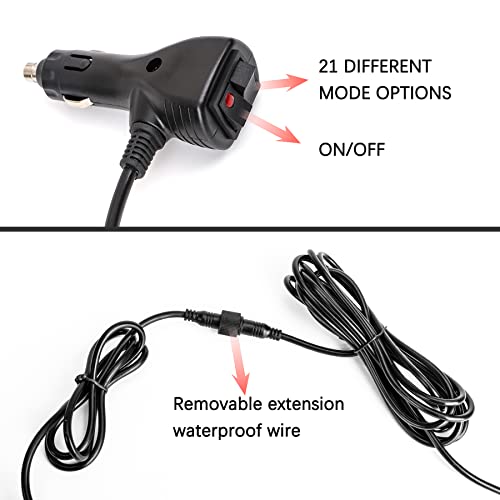 💡 Afmetingen: de lichtstrip heeft twee delen, elk stuk is 40 cm lang. De kabellengte van licht tot licht bedraagt 6,5 meter. De kabellengte tussen licht en sigarettenaansteker bedraagt 30 meter.