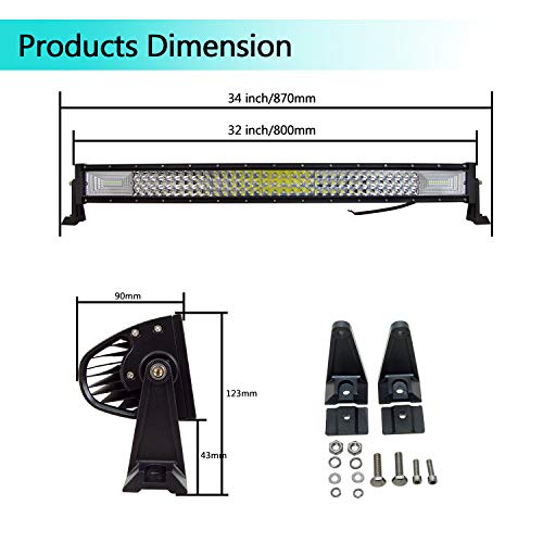 Specificaties: SKYWORLD Gebogen LED-lichtbalken, 32 inch 405 W Triple Rij Spot Flood Combo Beam Off-road Rijden Mistlamp voor Offroad…